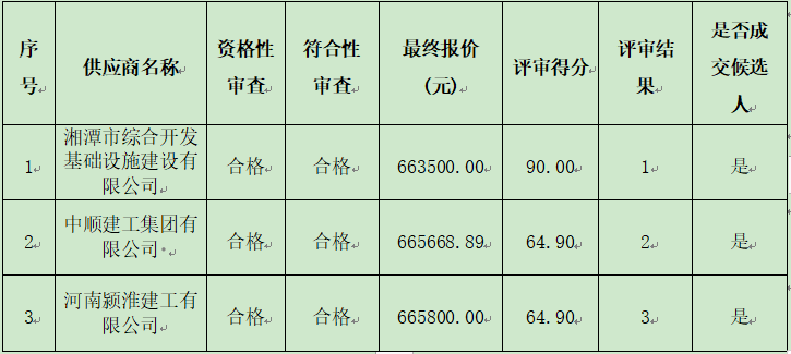 成交供应商名称:湘潭市综合开发基础设施建设有限公司
