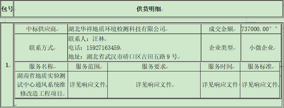 湖南省地质实验测试中心的湖南省地质实验测试中心通风系统维修改造工程项目竞争性磋商采购项目于2023年12月22日结束,现将成交结果公告如下: