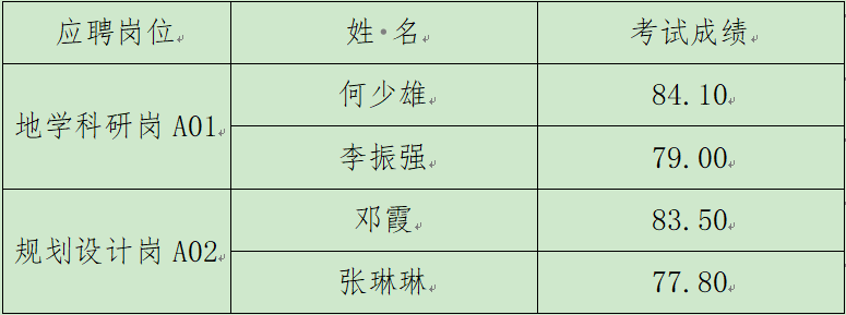 湖南省地质调查所2024年高层次人才公开招聘考试成绩公告