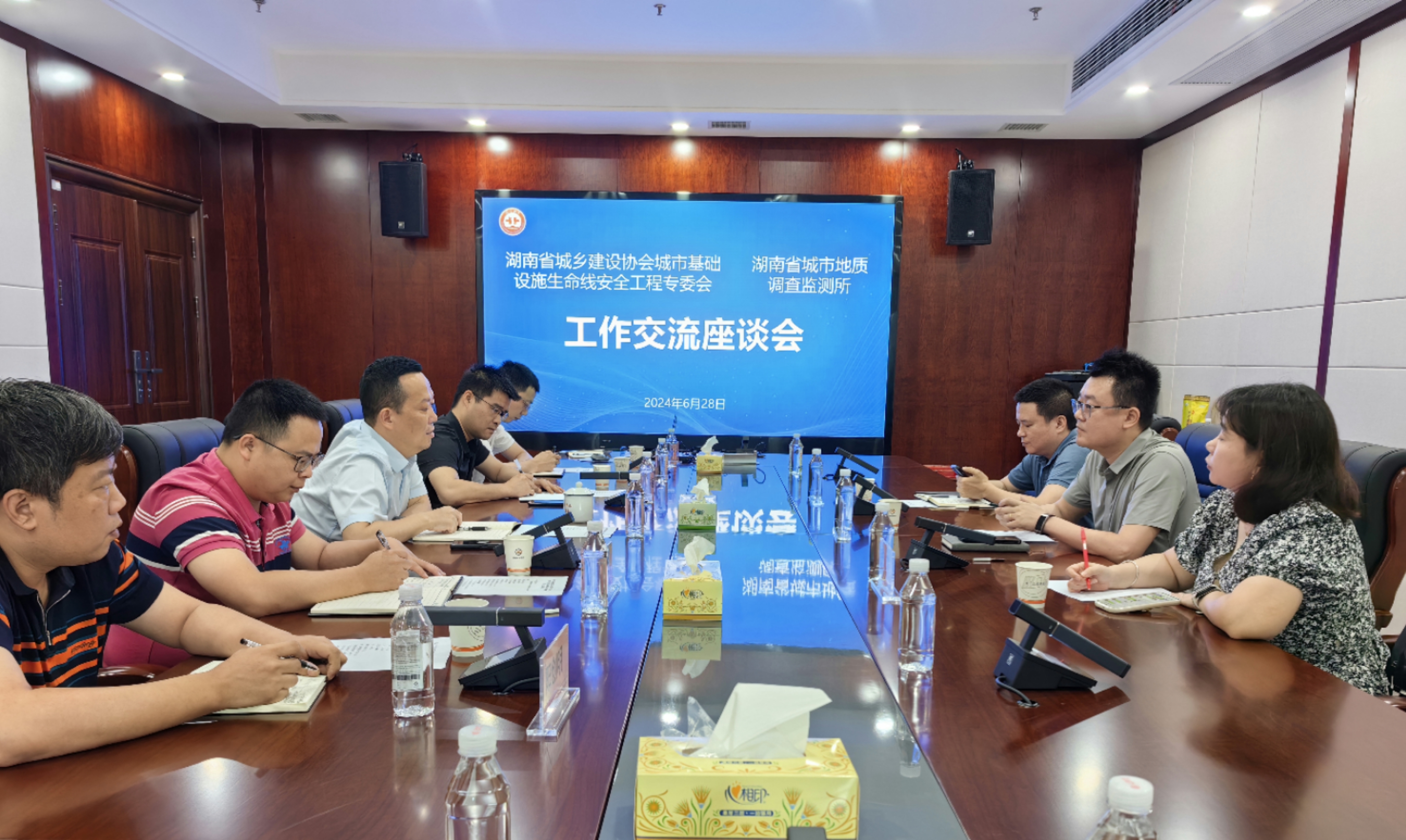 6月28日,湖南省城乡建设协会城市基础设施生命线安全工程专委会秘书长黄毅一行受邀到湖南省城市地质调查监测所就城市安全领域科研创新、技术应用等方面开展座谈交流。省城市基础设施生命线安全工程专委会副秘书长张琦、总工程师赵俊峰,省城调所所长陈俊华,二级实体、机关部室负责人参加座谈。