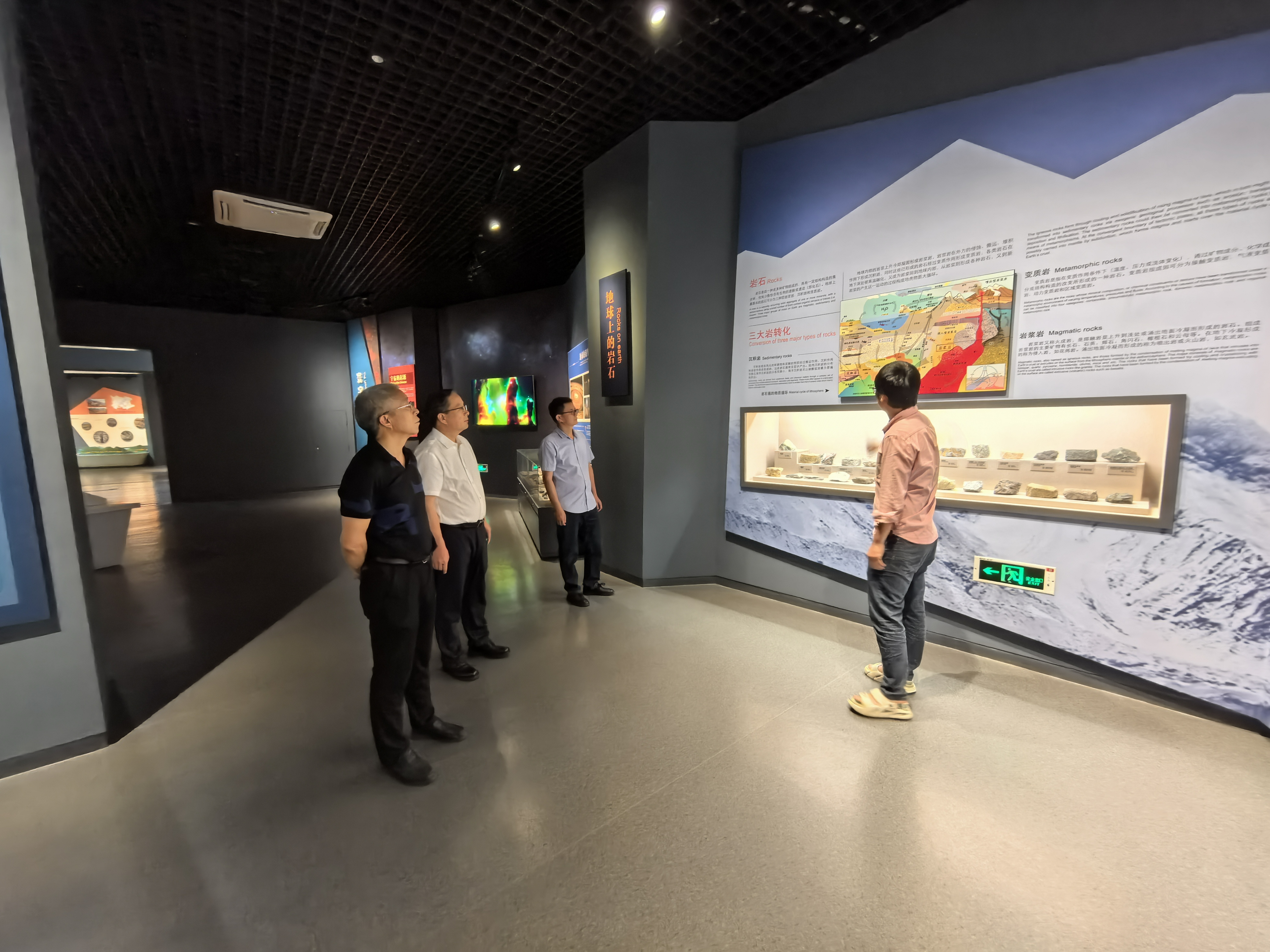 调研组参观了中国岩溶地质馆,系统了解岩溶地质演变及地下水开发利用模式。在联合国教科文组织国际岩溶研究中心基地,重点考察了岩溶碳循环试验场,通过实时监测数据与三维模型,深入认识岩溶地下水“地表-地下”双循环机制及其水资源调控价值。康汤指出,该成果为湖南岩溶区抗旱保供提供了重要参考。