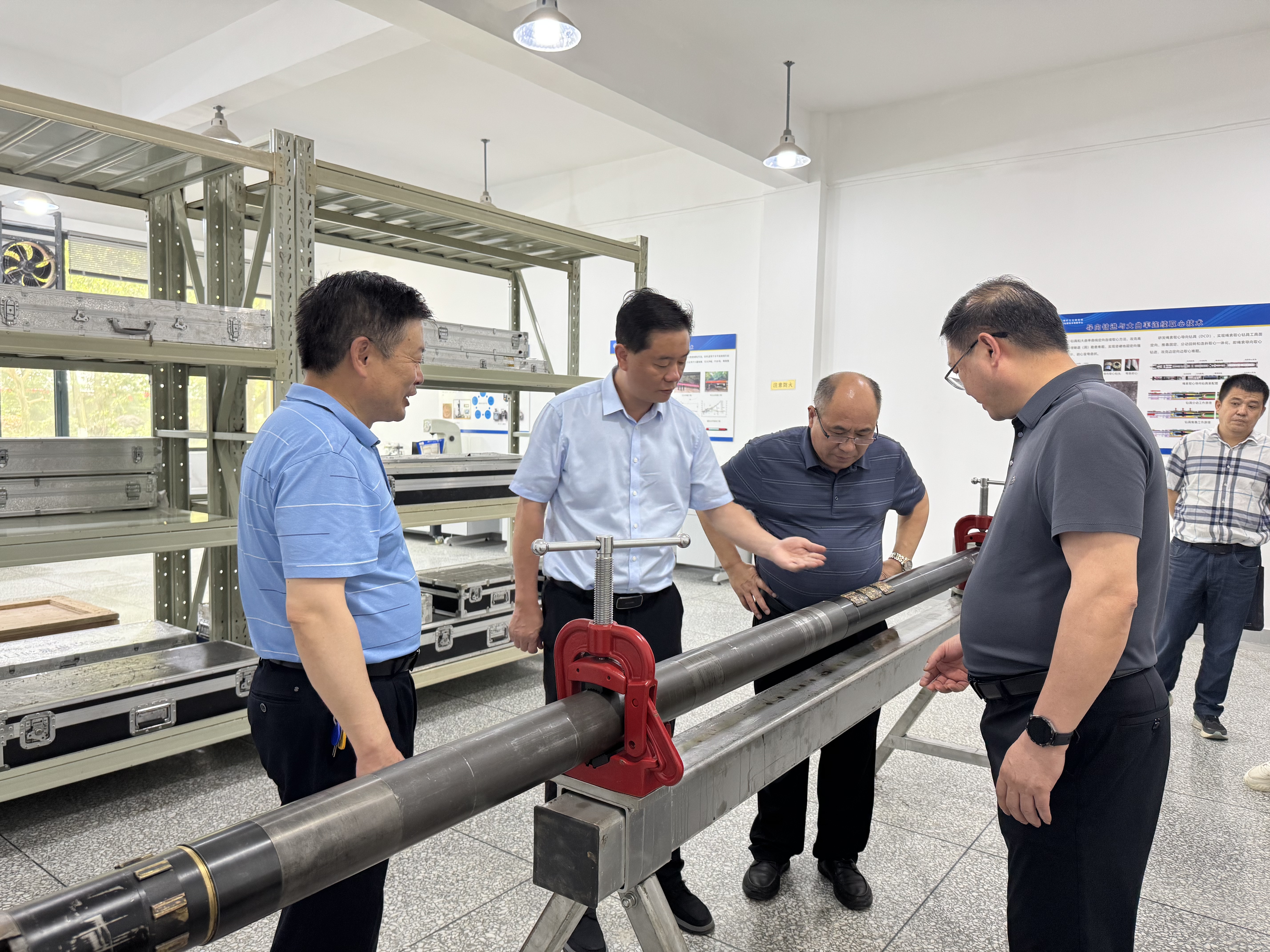 李剑雄一行实地参观了探矿工艺所仪器研发展厅,详细了解其在钻探技术、地质灾害防治、智能监测预警、水文地质与生态修复、科技创新与业务平台建设等领域成果。