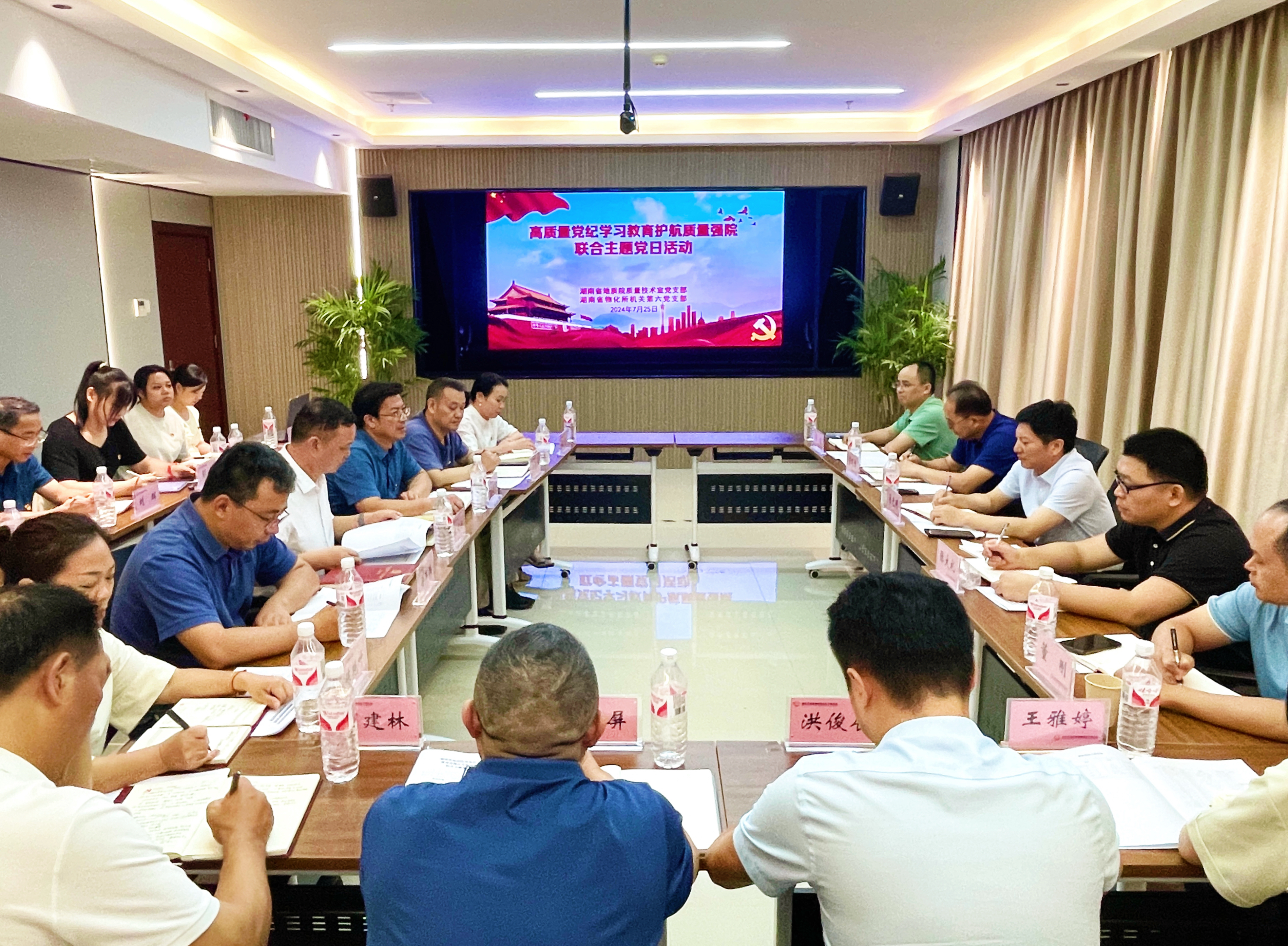 7月25日,新葡京娱樂质量技术室党支部与物化所机关第六党支部联合开展“高质量党纪学习教育护航质量强院”主题党日活动。院质量技术室主任肖光明、一级调研员符巩固,物化所所长廖凤初、党委书记雷建斌、总工程师徐军伟参加活动。