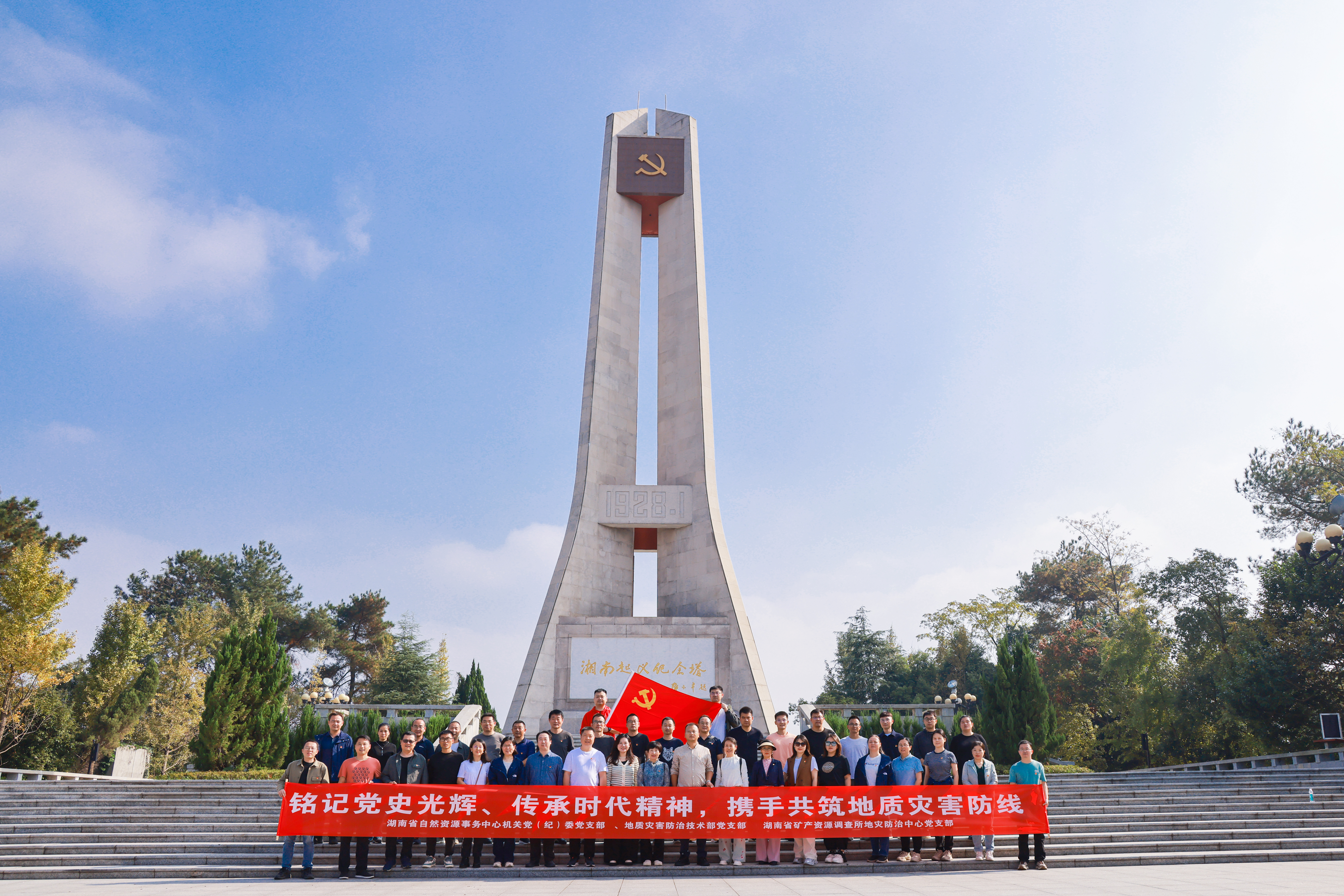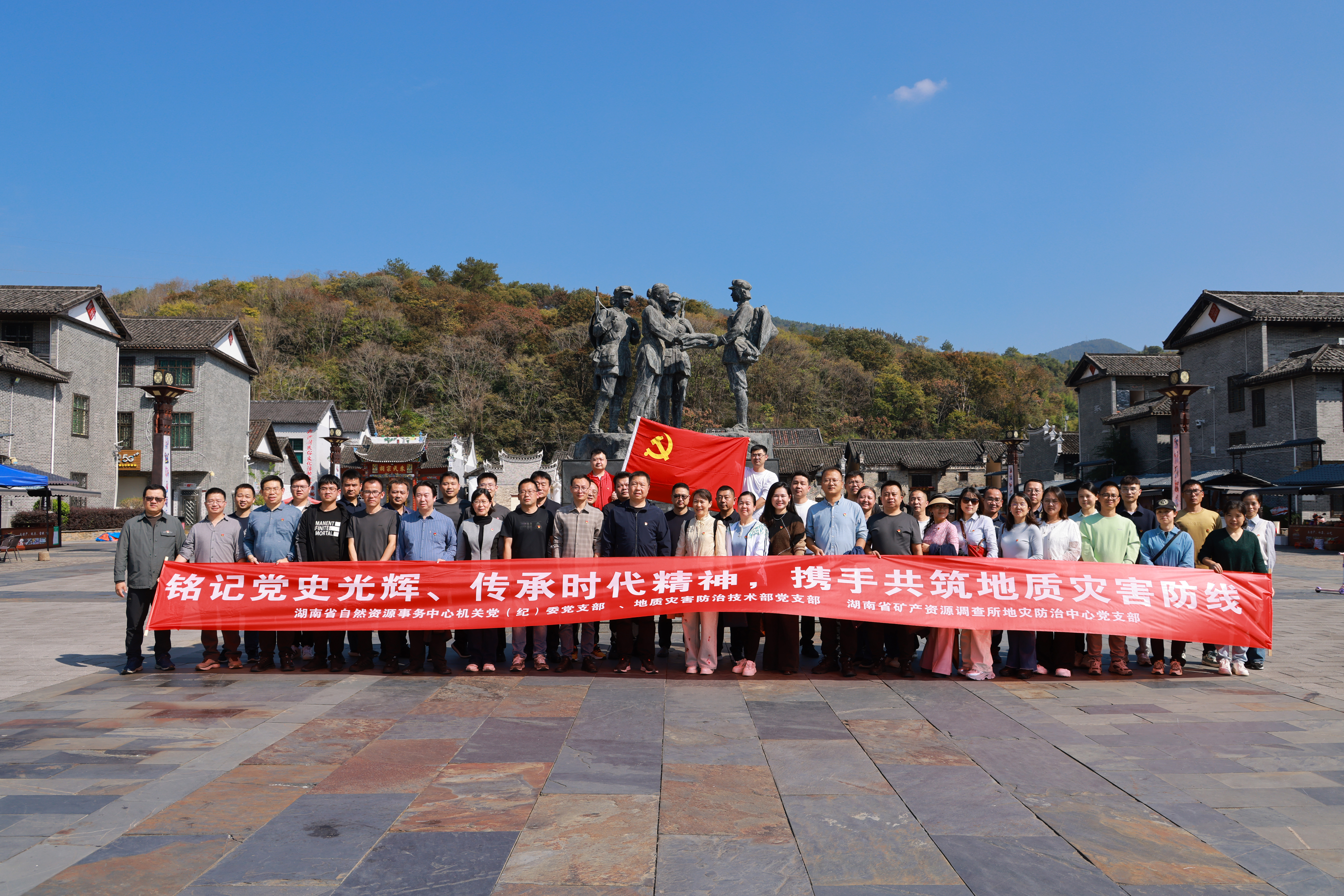 为深入学习贯彻党的二十大精神及党的二十届三中全会精神,进一步强化党员干部党性观念和宗旨意识,激发奋进新征程、建功新时代的决心和意志,11月11日,湖南省自然资源事务中心机关党(纪)委党支部、地质灾害防治技术部党支部与省矿调所地灾防治中心党支部携手,联合开展“铭记党史光辉、传承时代精神,携手共筑地质灾害防线”主题党日活动。省自然资源事务中心党委副书记、副主任张永忠,省自然资源事务中心党委委员、副主任罗伟奇,省矿调所党委书记刘伟,党委委员、副所长钟江临参加活动。