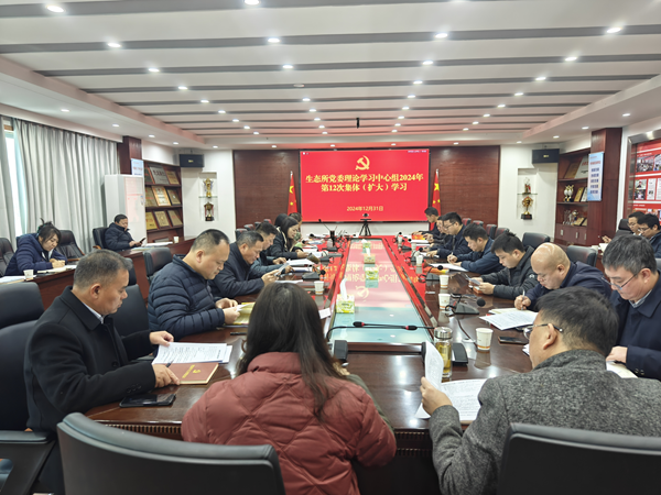 2024年12月31日,省生态所党委理论学习中心组开展2024年第12次集体(扩大)学习,党委书记张健主持并作学习总结,所长杨世珍及理论学习中心组成员,各党支部(总支)书记、各实体单位(部室)负责人共50余人参会。