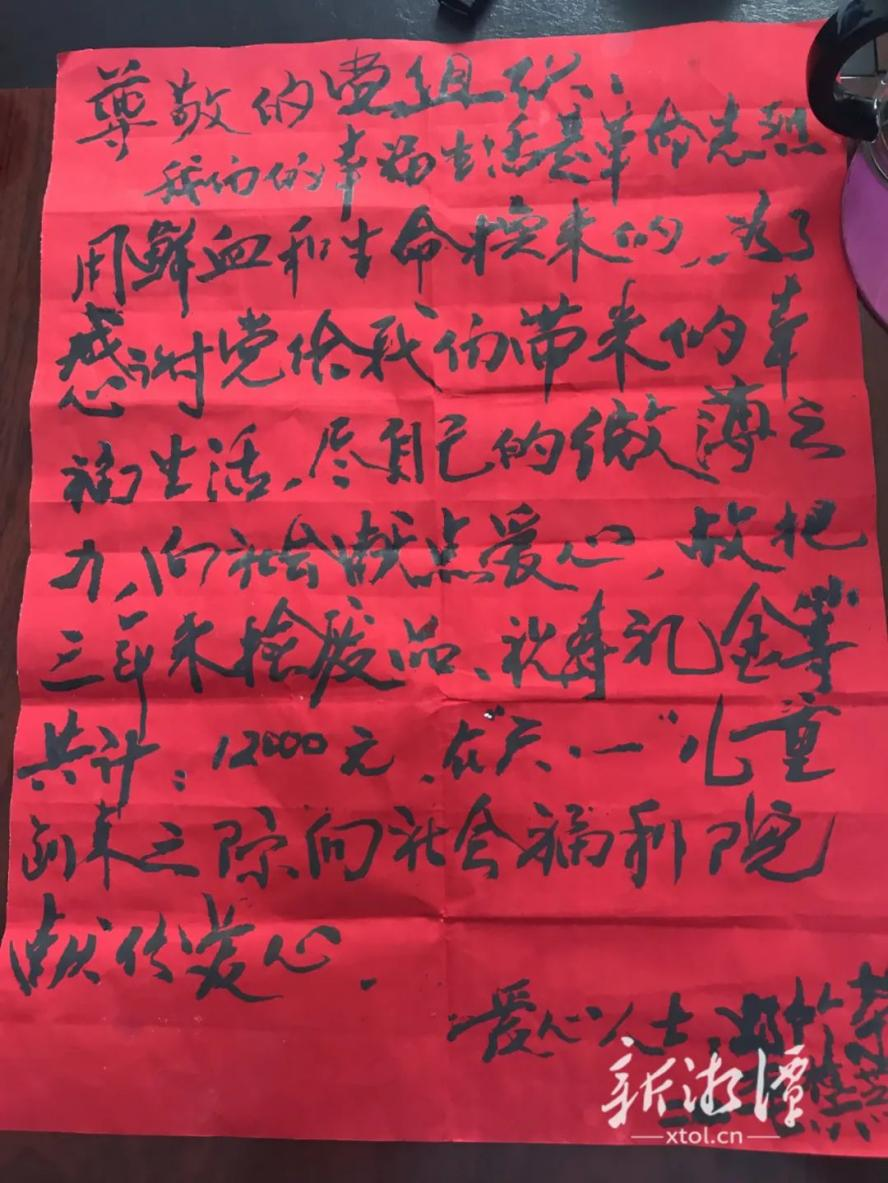 2017年6月1日,湘潭市社会(儿童)福利院收到一笔12000元捐款。与其他捐赠不同的是,这笔捐款只留下一封手写信,未透露捐赠人单位和联系方式。