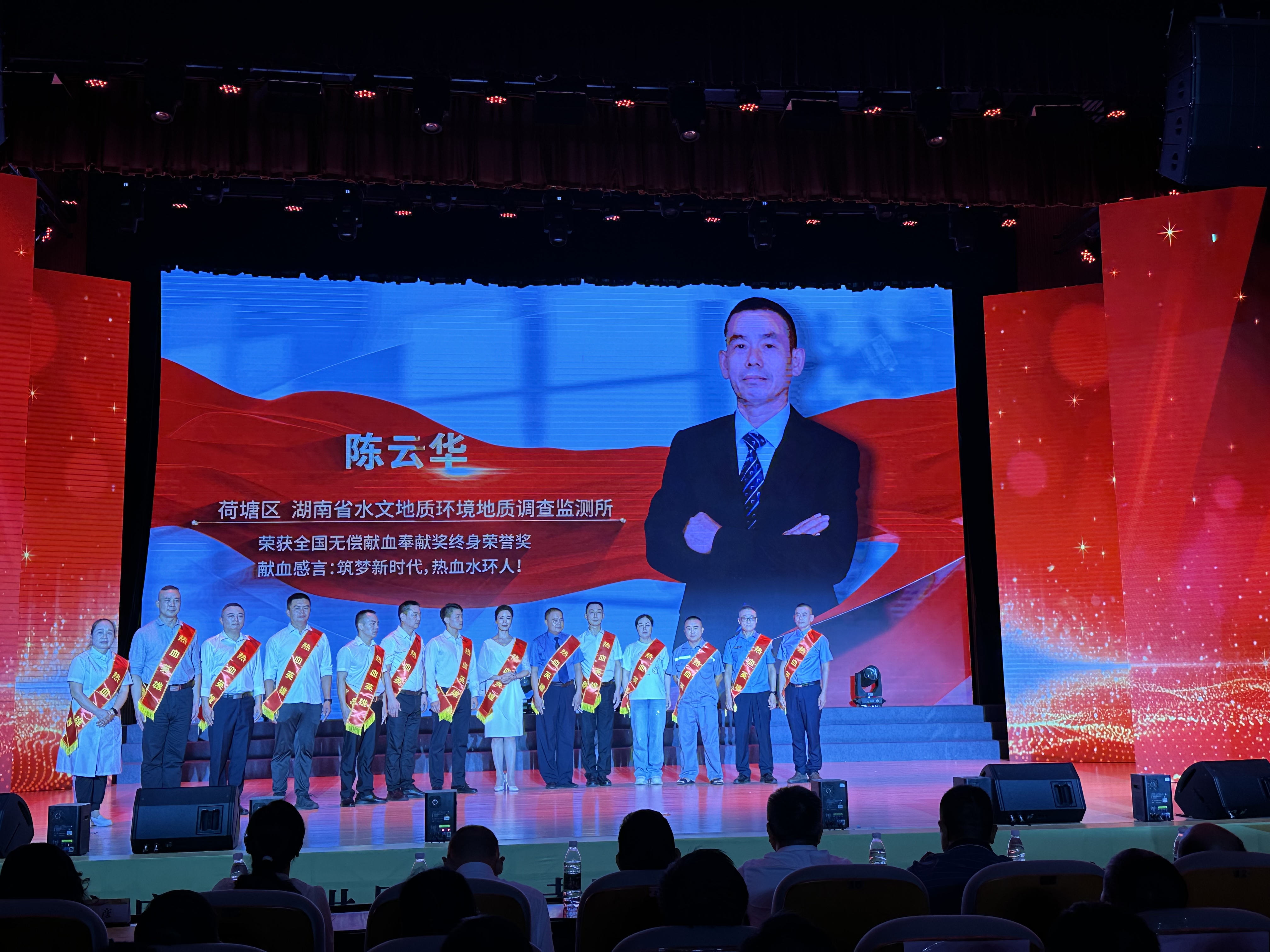 筑梦新时代,热血水环人。6月14日,株洲市庆祝“世界献血者日”20周年暨公益宣传活动在第二工人文化宫举行,省水环所机关第七党支部书记、基地管理服务部副部长陈云华获全国“无偿献血奉献奖”终身荣誉奖。