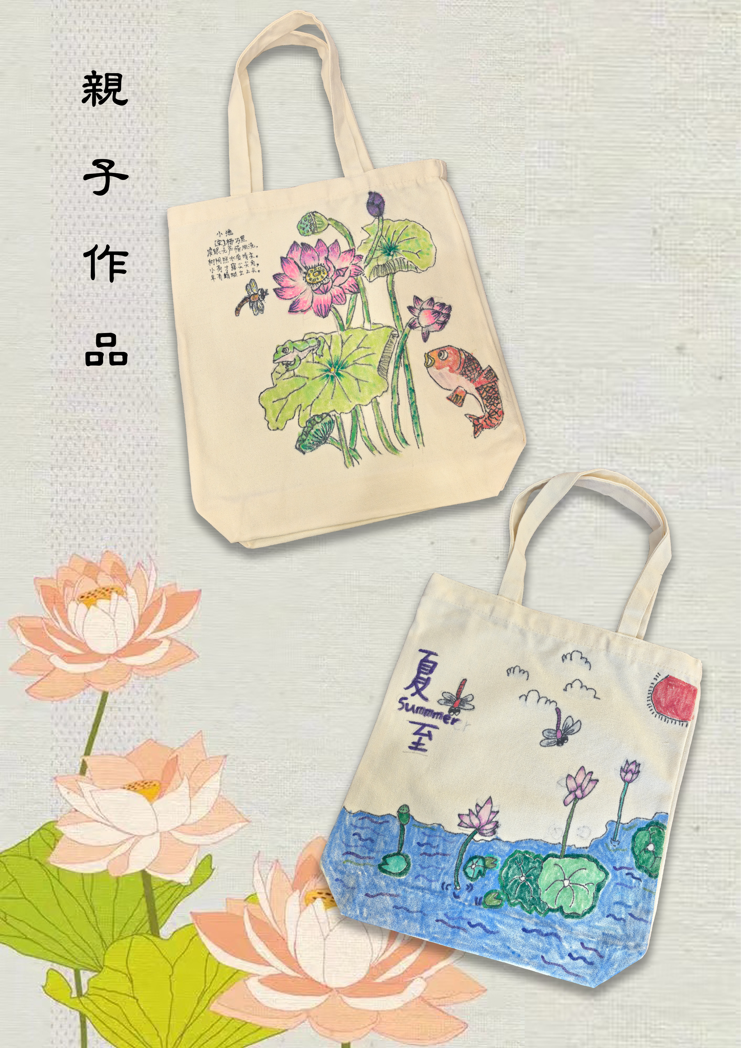 本次活动主题为“墨韵‘青莲’·帆布风雅”,旨在通过亲子间的协作,共同绘制青莲帆布包,让参与者体验到创作的乐趣,更在艺术的熏陶下培养对传统文化的理解和尊重,同时加强团队合作精神,提升艺术修养与审美能力。