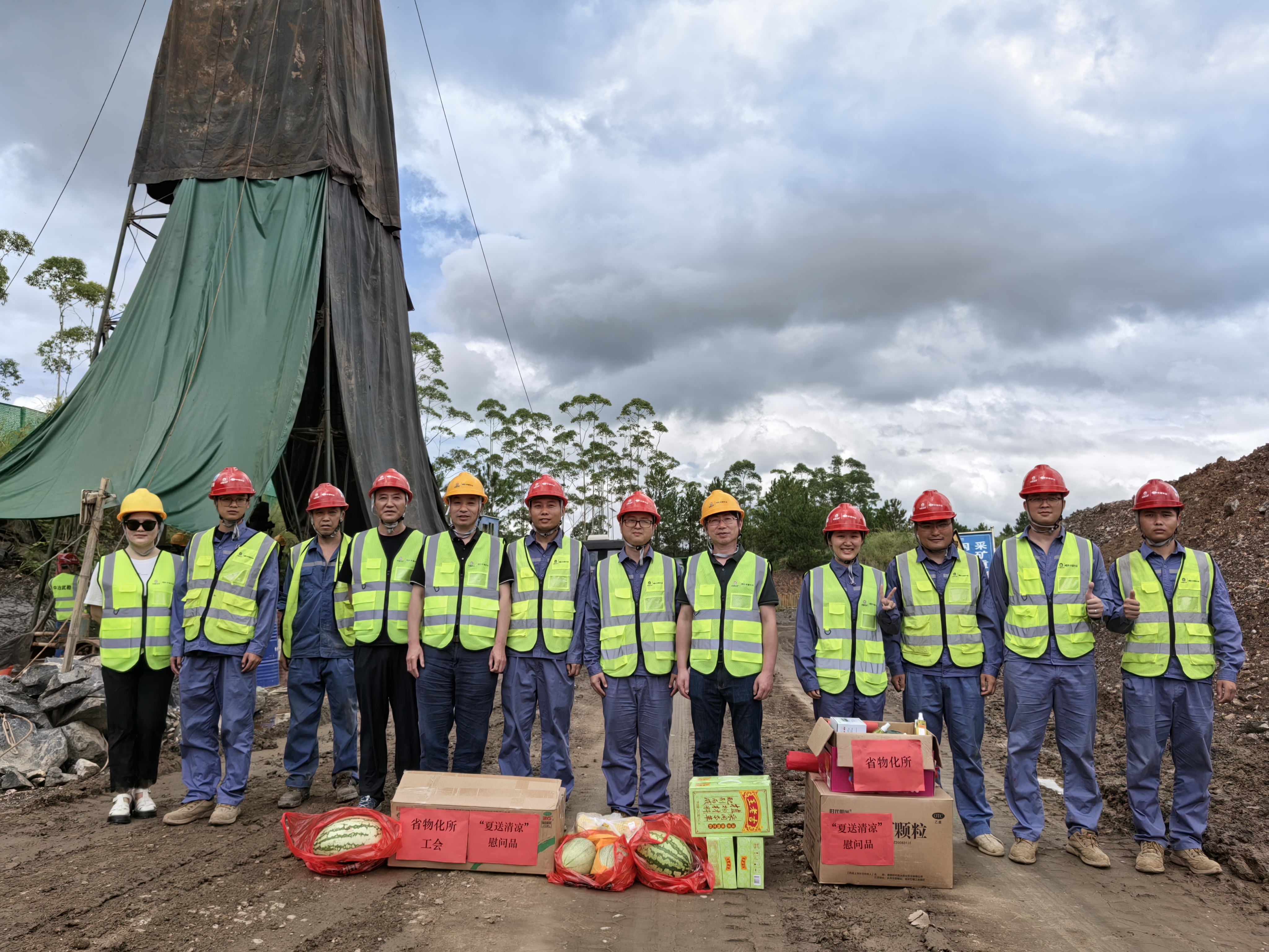 ▲7月31日,物化所党委副书记、副所长骆检兰,副所长唐志高,工会主席王粒共赴宜章萤石锡多金属矿项目开展安全生产检查暨“送清凉”活动。