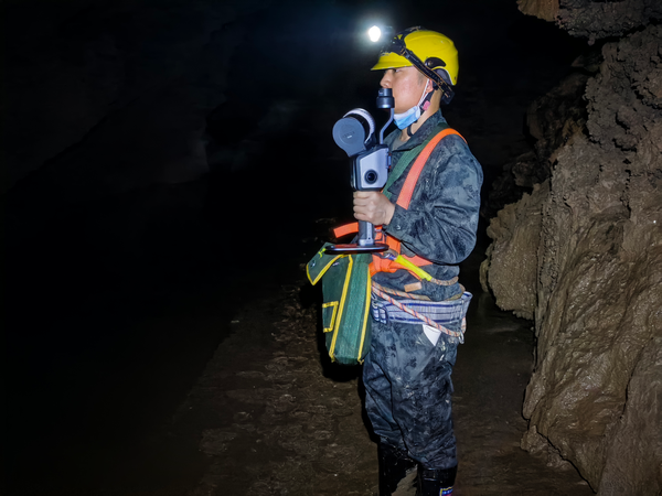 面对杨家坡溶洞复杂的空间结构与隐蔽的污染路径,科技手段成为关键突破口。项目组深入溶洞内部,利用3D激光扫描仪精细刻画其空间结构,绘制暗河“三维立体图”,结合传统测绘,精准定位了暗河内污染输入点及污染滞留区。