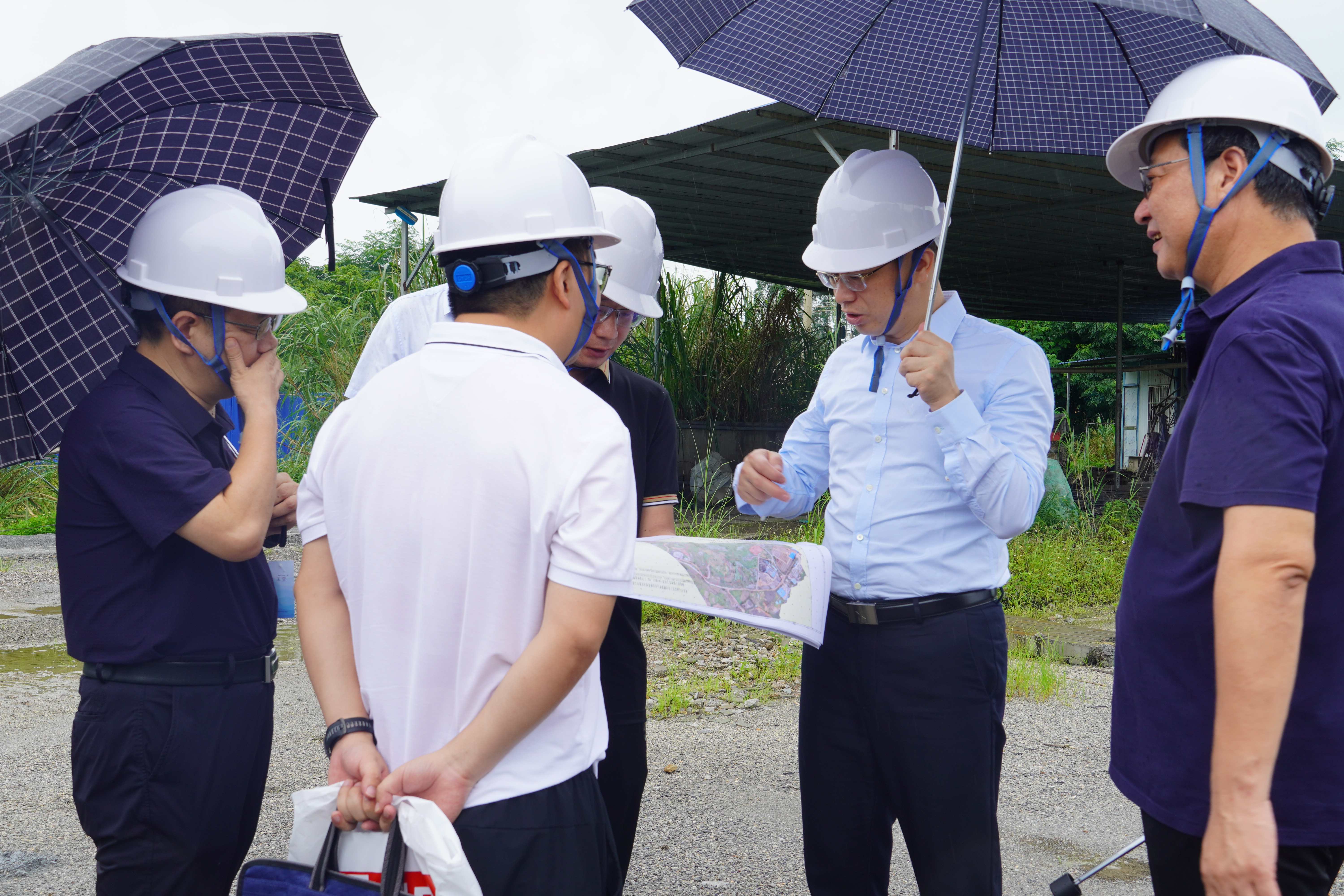 在水环所来宾市兴宾区历史遗留矿山生态修复自治区重大工程二期项目现场,谈文胜一行冒雨前往城郊矿点7、矿点1现场进行考察。该项目是广西历史遗留矿山—生态修复自治区典型案例,涉及历史遗留矿山52个,图斑78个,总修复面积127.1898公顷,设计合同额460万元。修复方向主要为耕地、林地、草地,修复措施主要为地质灾害隐患治理工程、土壤重构、地貌重塑、植被重建等。