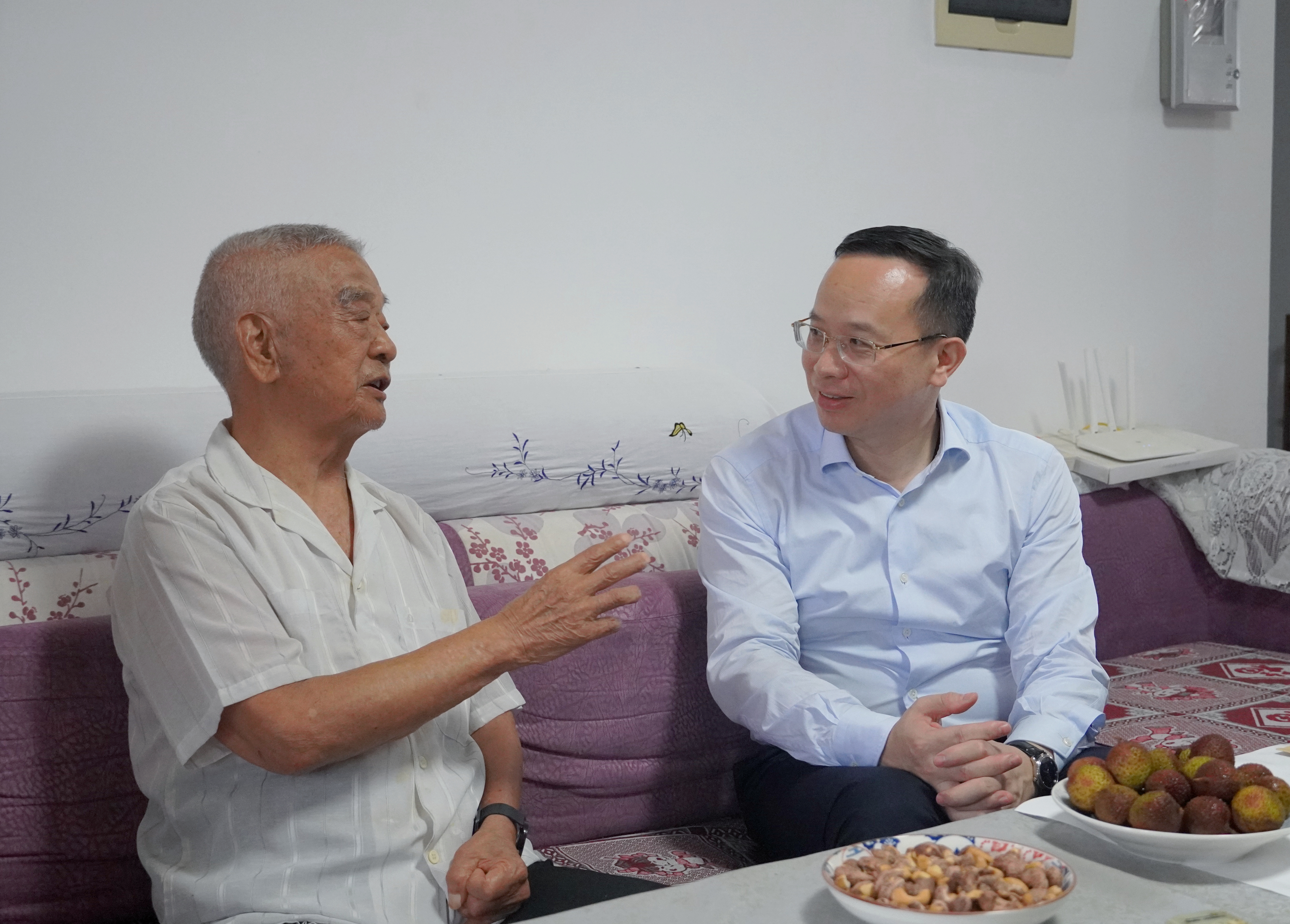 在中国共产党成立103周年之际,为了让老党员在生活上得到帮扶、精神上得到激励、情感上得到关心,澳门新葡京党委书记谈文胜走访慰问抗美援朝老兵唐敷安和“徐特立教育奖”获得者周林生两名离退休党员,送去院党委的关怀,并致以崇高敬意和亲切问候。