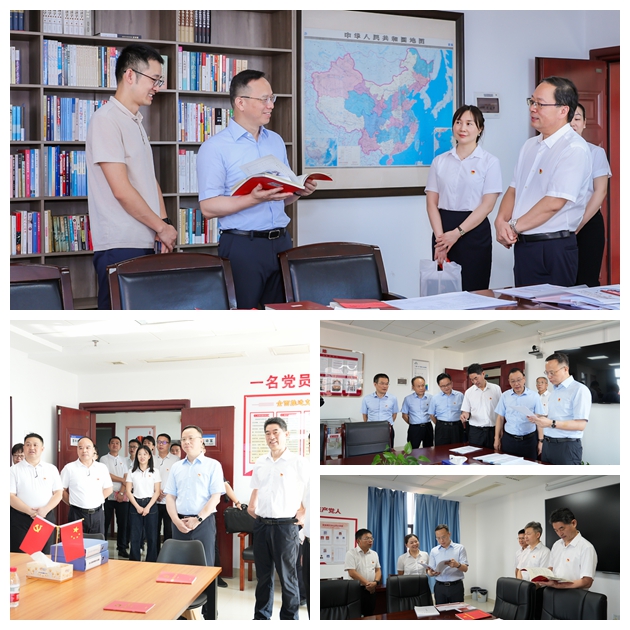 谈文胜一行还实地走访调研了4家单位基层党支部工作开展情况,现场查阅了支部建设台账资料,了解了基层党组织建设成果和党纪学习教育等情况,参观了党员活动室、党建活动阵地、党建文化墙、党建宣传展板等。他强调,院属各单位领导班子成员要带头推动党建业务深度融合、讲好纪律党课、参加所在基层党支部和联系基层党支部集中学习研讨,带头做到学懂弄通、入脑入心,以党员带头汇聚强大力量,以高质量党建引领湖南地质事业高质量发展。