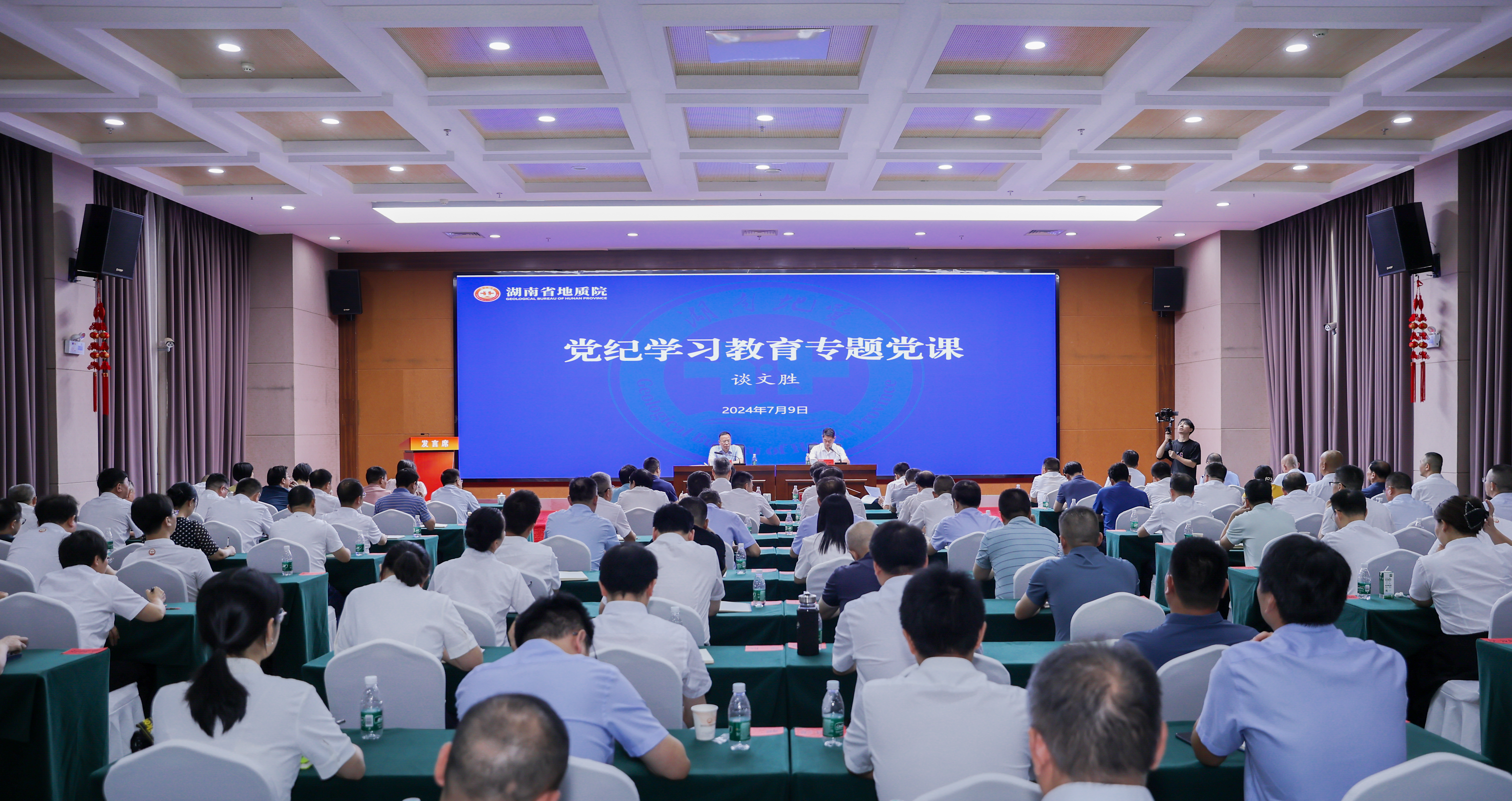 7月9日上午,新葡京娱樂党委书记谈文胜到空间所、矿调所、水环所、湘江公司开展党纪学习教育调研,并以《学深学透《条例》 忠诚干净担当》为题,讲授党纪学习教育专题党课,进一步学习贯彻习近平总书记关于全面加强党的纪律建设的重要论述精神,落实省委关于省直事业单位党委书记带头讲好纪律党课要求。新葡京娱樂党委委员、副院长蒋年生主持。