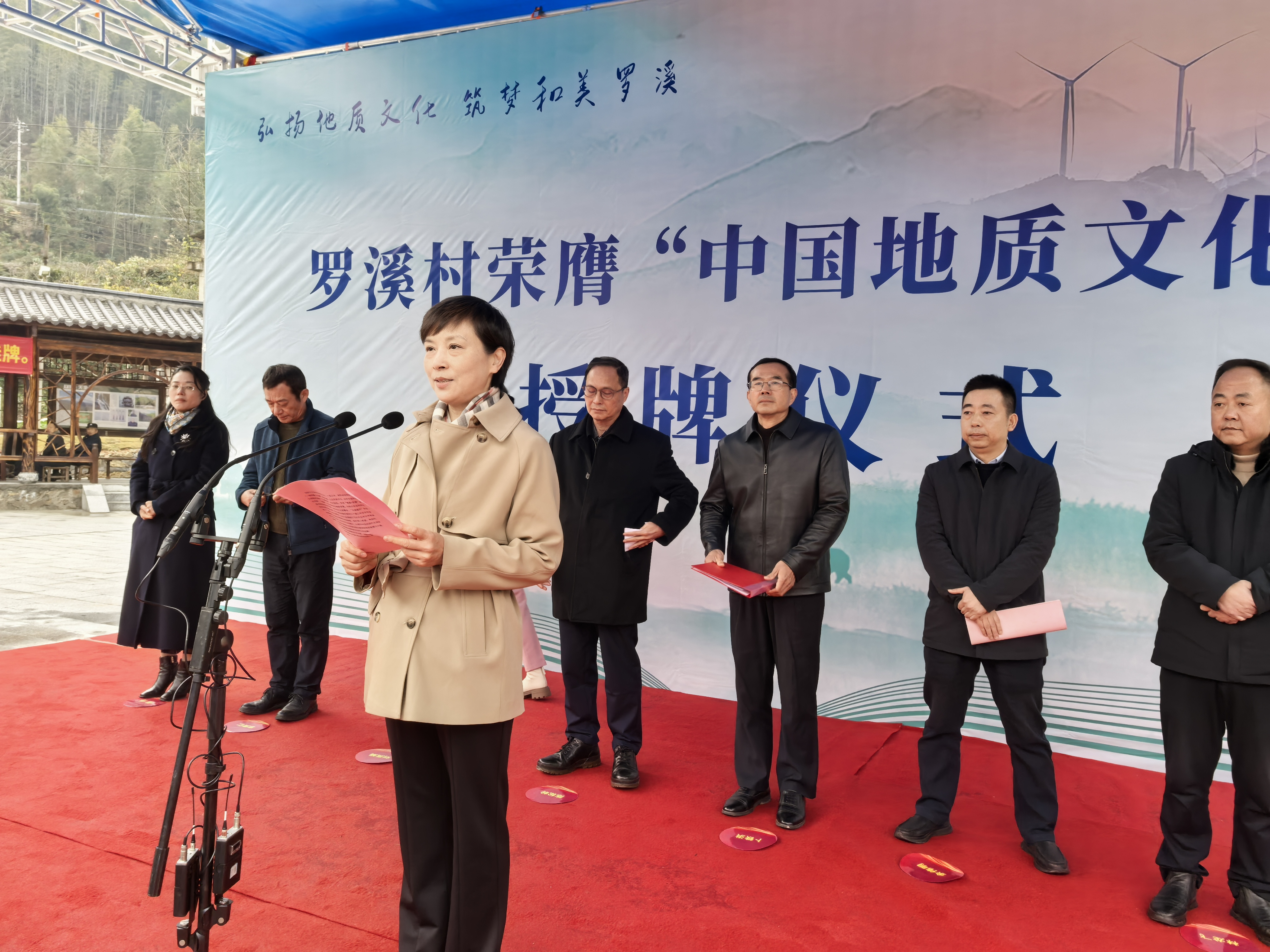 12月11日,新葡京娱樂党委委员、副院长刘凤娟应邀参加益阳桃江罗溪村全国地质文化村挂牌仪式并致辞。省地质学会理事长陈松岭代表中国地质学会致辞并授予罗溪村三星级全国地质文化村。省地质学会秘书长李贵仁,益阳市人大一级巡视员卜铁洪,益阳市自然资源和规划局党组书记、局长龚悟云,桃江县委常委、宣传部部长林龙飞等出席仪式。