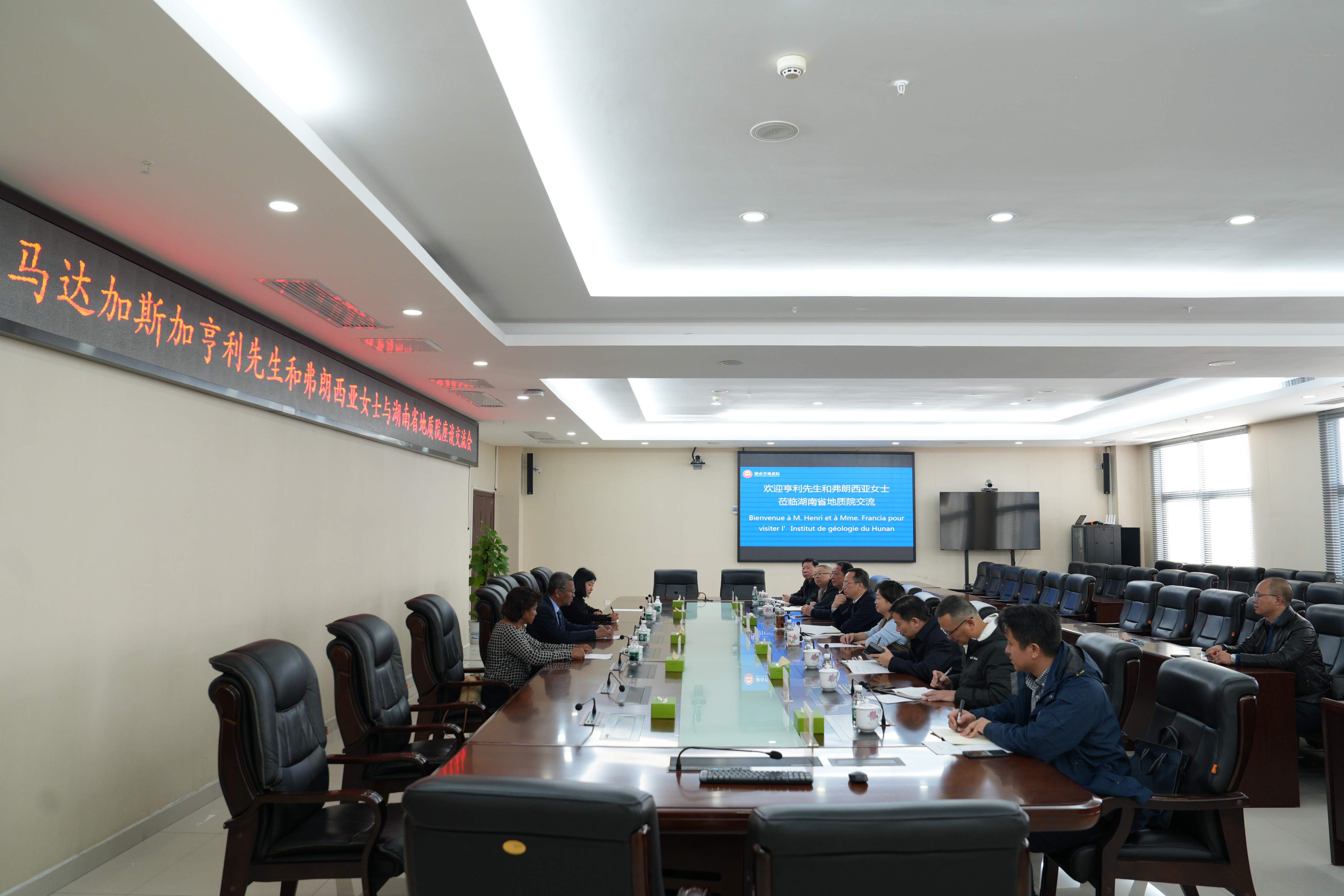 谈文胜对亨利的到访表示欢迎,并介绍了近年来湖南地质在非洲取得的一系列找矿成果。他指出,中马两国友谊深厚、合作基础坚实,近年来马达加斯加矿业部与澳门新葡京频繁互访,加深了双方友好关系。在马达加斯加设立湖南地质非洲工作站是基于对整体环境的深刻洞察、基础条件的充分考量以及“走出去”战略的现实需求而作出的决定。马达加斯加矿产资源丰富,勘查需求迫切,湖南地质已在马实施多个项目,有雄厚技术实力和丰富经验,特别是今年4月建成的马达加斯加湖南地质检测实验室,目前可检测30多种矿物质,为非洲矿产资源勘查与开发提供了强有力的技术支持。他强调,开放合作是响应省委、省政府“搭船出海、借梯上楼”号召的有力实践,也是院“一体两翼三支撑”发展战略的组成部分,要把湖南地质非洲工作站打造成辐射整个非洲的重要平台,树立湘马合作的典范,成为中非合作的标志性项目,推动中非关系向更高层次、更广领域发展,为构建中非命运共同体贡献地质智慧与力量。
