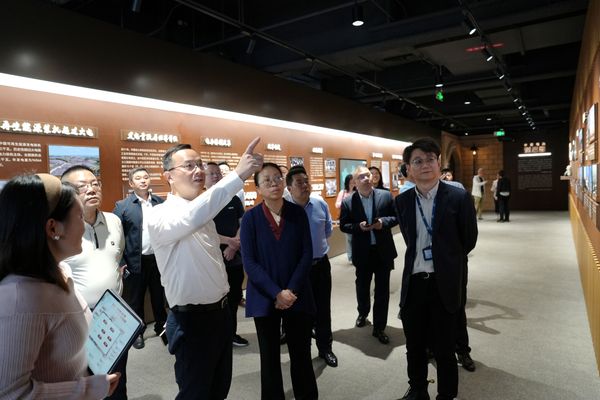 华东院于1953年在上海成立,作为综合性国际工程公司,业务广泛覆盖电力系统规划、火电、核电等多个领域,在我国能源电力建设中占据重要地位。谈文胜一行首先参观了华东院新建成的现代化办公大楼,重点考察二楼企业文化展厅。借助数字沙盘、动态数据可视化系统,考察组全面了解了华东院70余年的发展历程与综合实力。在“生命树”沉浸式展区,谈文胜对华东院将绿色建筑理念融入企业文化建设的创新举措高度赞许。