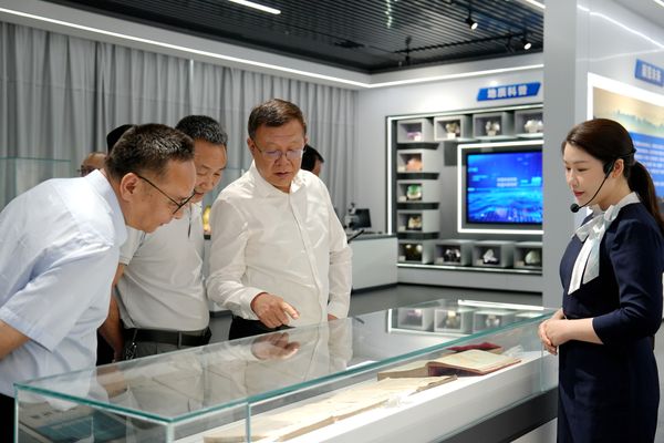 汪晓亮一行首先参观了湖南地质展厅,通过丰富的图文资料与实物展示,详细了解了湖南地质的发展历程和突出成果。