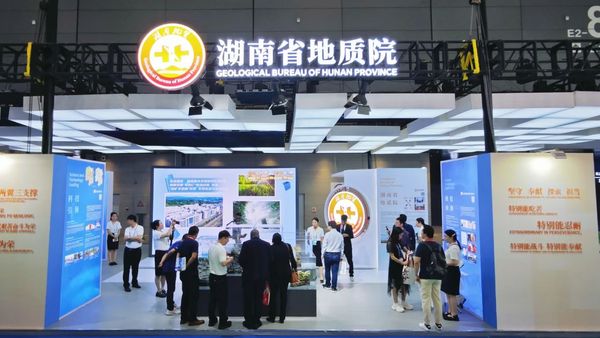 亚洲最大线上娱乐城在长沙国际会展中心E2智慧矿山技术与设备馆湖南企业“走出去”联盟展区E2-TA03区精心布置湖南地质展馆,推介15家院属单位突出成果。