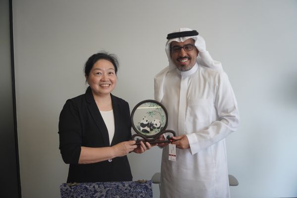 张皓向沙特工业和矿业部赠送双面绣礼品。