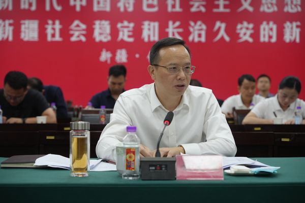 张成文对谈文胜一行的到来表示热烈欢迎,他高度肯定湘伊地质合作的深厚基础与丰硕成果。他表示,湖南地质系统长期以来在人才要素保障、地质技术支撑等方面为伊犁州自然资源工作提供了强有力支持,双方情谊深厚、合作紧密。期待以此次基地揭牌为契机,进一步深化战略协同,在项目谋划、人才交流、科技创新等领域开展更深层次、更宽领域的合作,共同做深做实地质援疆文章,以高水平地质服务为伊犁州守护生态安全、保障资源供给、推动产业升级注入新动能。