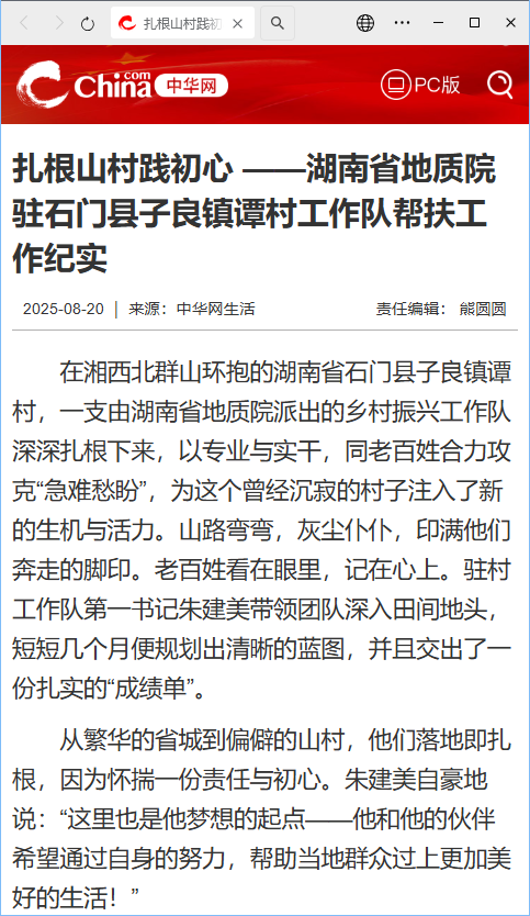 【中华网】扎根山村践初心 ——新葡京娱樂驻石门县子良镇谭村工作队帮扶工作纪实