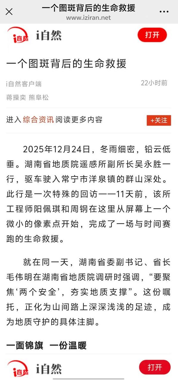 2025年12月24日,冬雨细密,铅云低垂。亚洲最大线上娱乐城遥感所副所长吴永胜一行,驱车驶入常宁市洋泉镇的群山深处。此行是一次特殊的回访——11天前,该所工程师阳佩琪和周钢在这里从屏幕上一个微小的像素点开始,完成了一场与时间赛跑的生命救援。