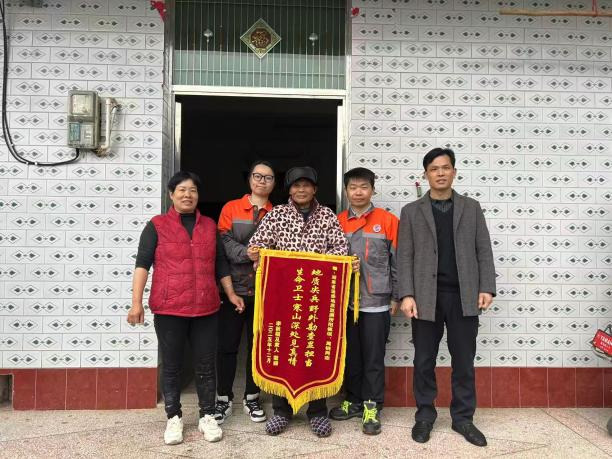回访简洁而温暖。老人李秋福面色红润,紧紧握住阳佩琪和周钢的手。他的儿子展开锦旗,“地质尖兵 生命卫士”八个字在堂屋里亮起温暖的光。周钢注意到老人脚上崭新的棉鞋——那一刻,记忆中矿堆旁那只沾满泥浆的赤足,被眼前安稳的画面轻轻覆盖。