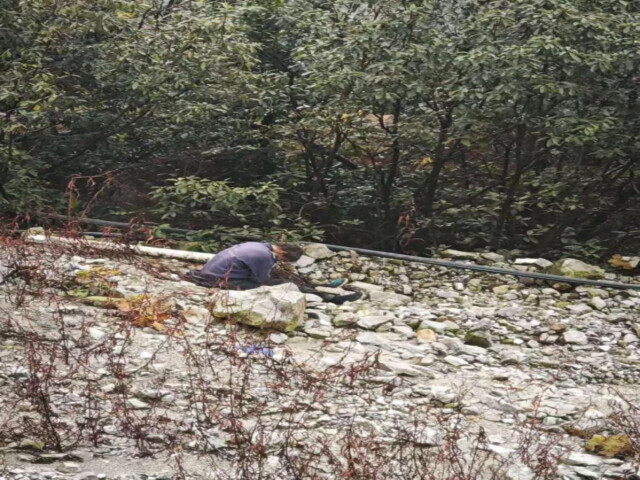 时间回到12月13日。雨后山风刺骨,阳佩琪和周钢正进行矿山损毁图斑核查。无人机传回实时画面,一片灰褐色的矿石堆旁,一个极浅的像素点引起了阳佩琪的注意。她推动摇杆,镜头聚焦——那竟是个人影。