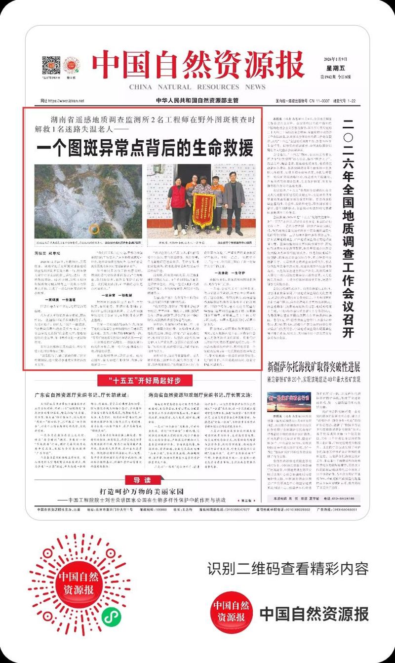 【中国自然资源报头版头条】湖南省遥感地质调查监测所2名工程师在野外图斑核查时解救1名迷路失温老人——一个图斑异常点背后的生命救援