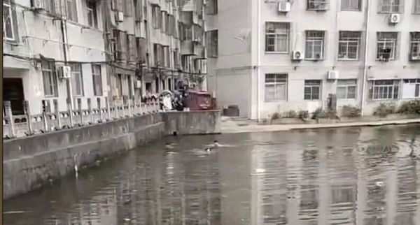 正在水塘中央挣扎扑腾