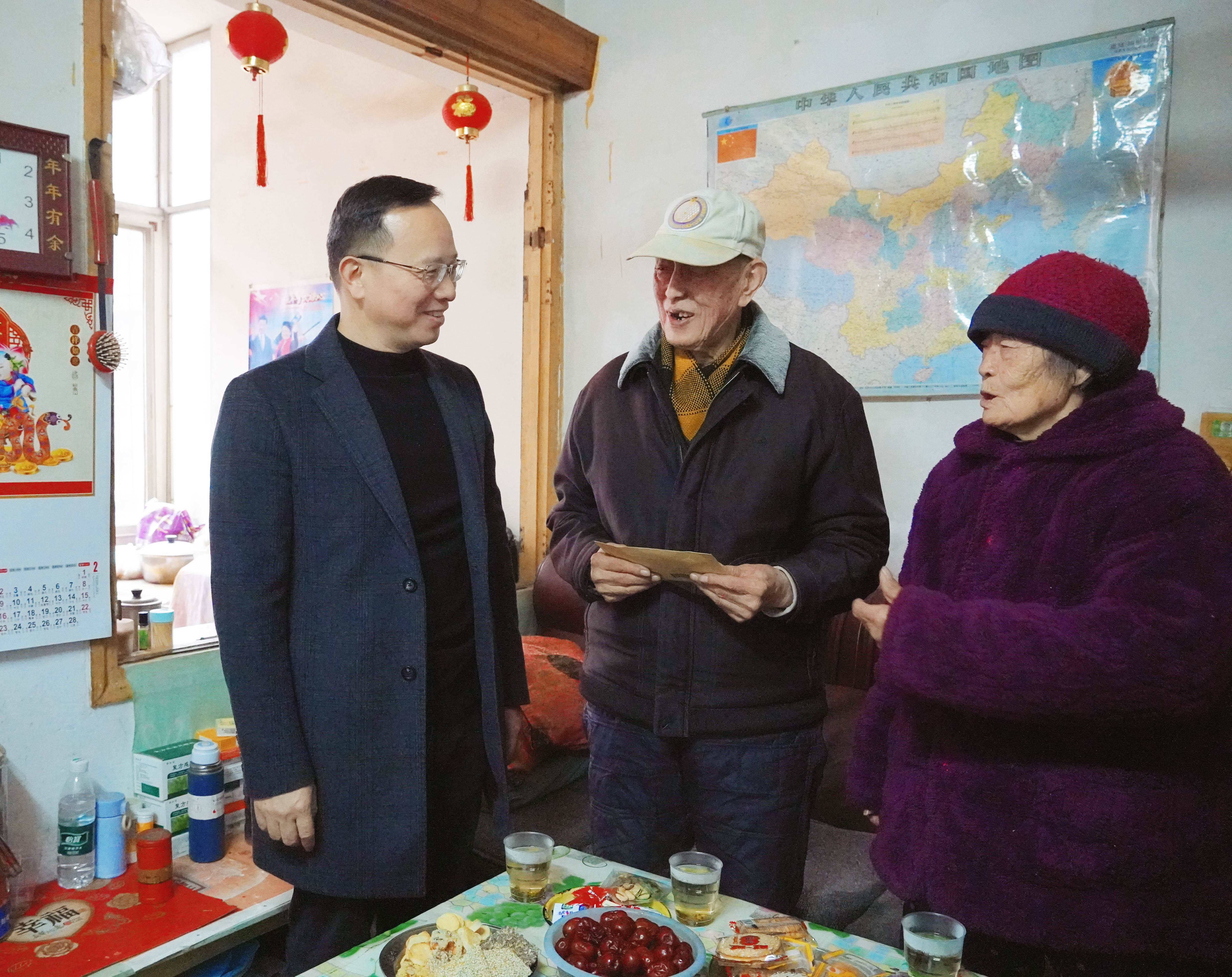 在衡阳地信所光明基地,谈文胜的一句“老前辈,新年好!春节快到了,我们来看您啦!”瞬间拉近了与中华人民共和国成立前参加工作的老工人李福柱的距离。李福柱老人紧紧握住他的手,激动之情溢于言表。谈文胜关切地询问老人的身体、生活状况及困难,叮嘱他和家人保重身体,保持乐观心态。同时,谈文胜向李老简要介绍了湖南地质改革发展的成果,对他为湖南地质事业的奉献致以诚挚谢意。李福柱老人深情回忆起1949年8月在延安高级法院参加革命后的戎马生涯,跟随部队辗转南北,投身戈壁沙漠,参与新中国核事业建设,自豪之情溢于言表。他对地质院党委的关怀关爱感恩不已。
