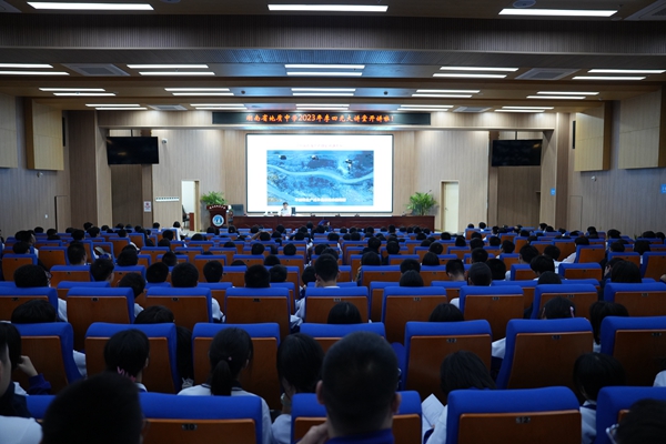 谈文胜为省地质中学“李四光大讲堂”开讲
