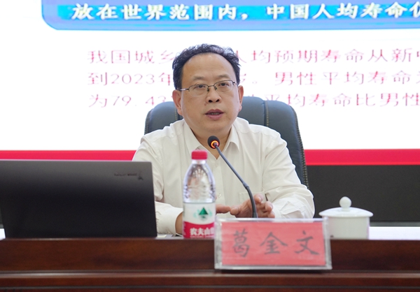 谈文胜对葛金文的精彩授课表示衷心感谢,他表示,讲座内容深入浅出,既有很强的理论高度,又为我们加强自我保健、开启健康之门提供了很好的方法,要切实把中医药这一祖先留给我们的宝贵财富传承好、发展好、利用好。他指出,院党委深入贯彻落实党的二十大关于推进健康中国建设要求,高度重视和关注全院干部职工的身心健康。他强调,要把健康当作一项毕生的责任。牢固树立每个人是自己健康第一责任人理念,涵养理性平和的健康心态,保持身心健康,对自己、对家人、对工作、对社会负责。要把运动当作一种生活方式。体育锻炼是促进身体健康最经济最实用的方式,全院要以院第一届职工运动会为起点,广泛开展各类体育运动活动,打造湖南地质职工健康的高地。要把养生当作一生严守的自律。把预防作为健康管理第一位的措施,充分用好讲座提到的七种科学方法,养好精、气、神,让我们的身心更健康、工作更愉快、家庭更幸福、生活更美好。(文/孙 纯 图/郭美怡 编辑/姚 岑)