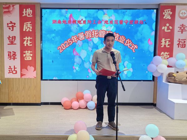 8月22日,“地质花蕾守望驿站”2025年暑期托管班结业仪式在湘地大厦20楼举行。省地质工会主席刘胜平、新葡京娱樂核地质所党委书记赵胤淳参加仪式并讲话,所工会主席张昭贤,家长代表、志愿者老师及托管班全体师生80余人参加。