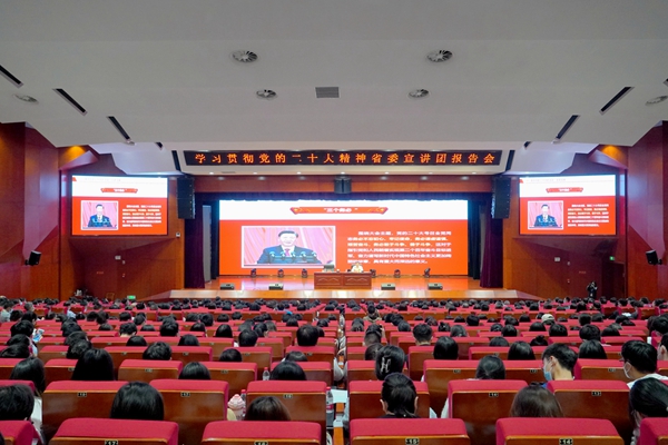 11月10日上午,学习贯彻党的二十大精神省委宣讲团报告会在湖南工商大学举行。省委宣讲团成员、新葡京娱樂党委书记谈文胜作宣讲报告,湖南工商大学党委书记、中国工程院院士陈晓红主持报告会。