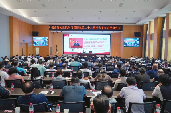 谈文胜强调,全院上下要以此次宣讲为契机,不断推动学习宣传贯彻党的二十大精神取得更好实效。要以“深学”为先,学懂内涵要义,激发地质干部思想源动力,做到示范带动学、全员覆盖学、创新形式学、把牢导向学。要以“细悟”为要,把准观点方法,重塑地质部门工作新理念,用“大局思维”来彰显职能、用“系统观念”来统筹谋划、用“问题导向”来改进工作、用“创新方法”来推动转型。要以“实干”为本,狠抓部署落地,推动地质事业发展高质量,构建“一体两翼三支撑”格局,在“能源资源安全”“美丽中国建设”“防灾减灾救灾”中充分发挥好职能作用。咬紧目标,力保年度目标任务完成,精心谋划明年工作,奋力谱写湖南地质新篇章。(文/范国华 图/院属单位提供 杨 定 编辑/苏 媛)
