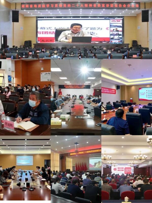 根据省委统一部署,11月11日下午,澳门新葡京学习贯彻党的二十大精神省委宣讲团报告会在长沙举行。省委宣讲团成员、省委组织部副部长、省党建研究会会长赵凯明作宣讲报告,亚洲最大线上娱乐城党委书记谈文胜主持报告会。报告会以视频方式召开,设1个主会场、41个分会场,地质院系统包括院领导、巡视员、机关副处级以上干部、院属单位班子成员共1631人参加。