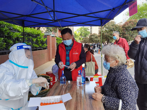 “先打开微信,再点右上角的+号,扫场所码。”“排队请注意脚下标识,和周围人保持一米距离。”“现在人少不用排长队,赶紧到群里发通知让人下来检测,避免一会儿人多扎堆。”……随着长沙市雨花区推进多轮核酸检测,院机关离退休工作部党支部联合南苑小区离退休支部和地质家园离退休支部的志愿者老同志们,身穿醒目的红色马甲忙前忙后。老同志们发挥自己情况熟、威信高的优势,在各个居民群号召大家按要求进行核酸检测,并紧密配合圭塘社区、麻园湾社区开展小区两码查验、核酸检测秩序引导维护、环境消毒消杀等工作,尽力为医护人员和居民们提供井然有序、畅通高效的检测环境,成为了小区令人安心的一道“安全线”。