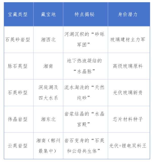 - 湘西的石英砂岩支撑着传统玻璃产业郴州正着手打造石英矿深加工产业园,并试点“石英+锂”联合开发