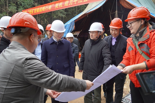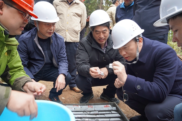 谈文胜一行先后实地走访了省地灾所承担的平江仁里矿区铌钽多金属矿普查项目和平江县三阳乡潭曹村万古矿区金矿项目,询问项目进展,察看钻探岩心,详细了解项目困难及成果。叮嘱钻机班组人员做好保暖防寒措施,注意取暖用火用电安全,确保安全生产。