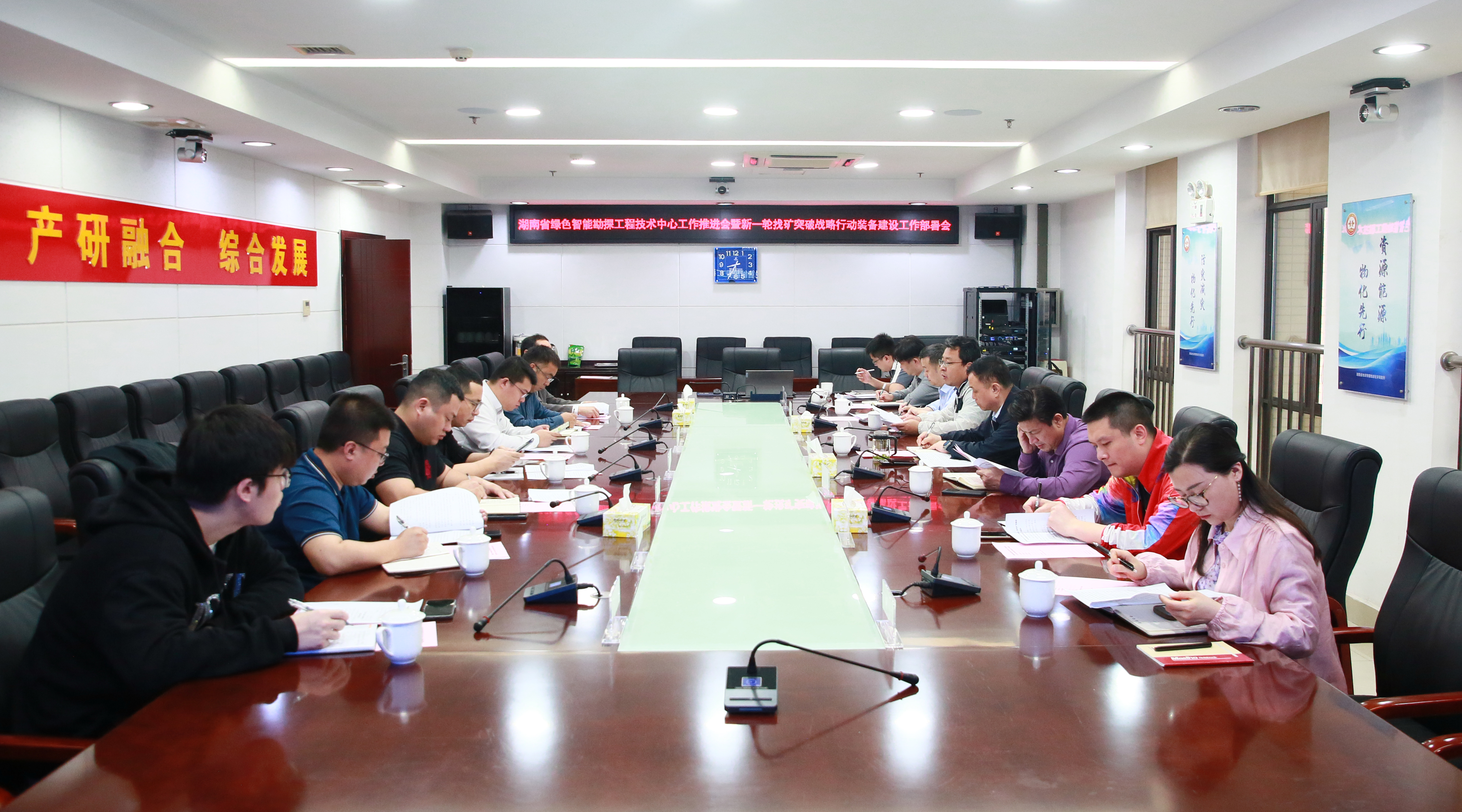 会议强调,要牢牢把握此次找矿突破战略行动装备更新的良好机遇,紧跟市场需求,加强地质装备研发与升级改造,切实提升核心竞争力。一是形成装备建设方案。根据自然资源部相关文件要求,盘点评估主要装备情况,对重点领域的装备升级及研发方案提出建设性意见,提交新一轮找矿突破战略行动的装备建设方案;二是开展推广展示行动。利用湖南地质展厅、各类专业学术活动、互联网等平台,充分展现在地质勘探、矿产资源开发等领域的优势和成果、自主研发设备装备、技术创新成效等;三是打造示范应用场景。将新型物探、钻探及测试设备集成应用在项目上进行展示,打造典型场景技术装备示范;四是践行开放合作理念。加强与高校、科研院所以及高新企业的对接合作,共同推进关键技术装备攻关。通过加强合作、共享资源、共赢发展,为湖南地质事业高质量发展汇聚磅礴力量。