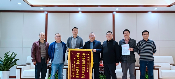 11月4日下午,省资源所迎来了海南燕窝岭水泥灰岩矿生态修复项目的业主方,远道而来的海南华盛集团、海南昌江水泥有限公司的负责同志将一面“敢打硬仗显地质湘军风采质量优良展一流国企担当”的锦旗和感谢信送到资源所,感谢资源所对该公司生态修复治理项目提供的坚强技术支撑和周密细致服务。