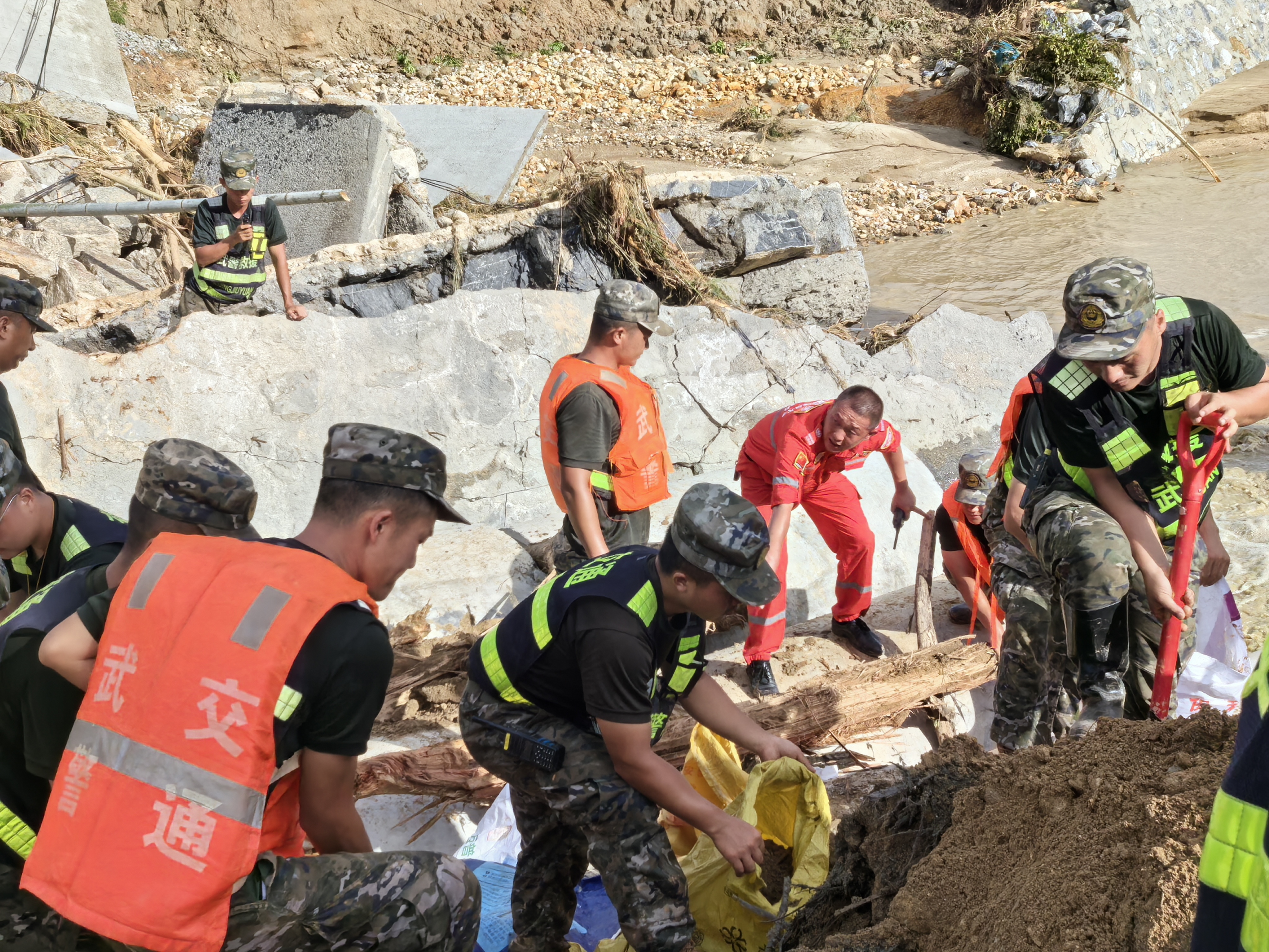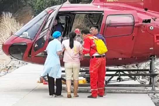 31日凌晨,与时间激战的搜救分队先后趟水穿过100米宽的河流,翻过两座200米的高山,手脚并用爬过5处滑坡点,历时6个小时,配合武警和消防救援人员,终于成功将孕妇和受伤人员送上救援直升机。