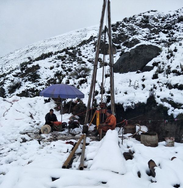 项目组有个测井点在海拔4000多米、空气十分稀薄的折多山。当天本是艳阳高照,大家热得冒汗,突然之间天地昏暗、气温骤降30多度,天空竟下起了雪,又冻得大家直打哆嗦!好在大家都随身带着御寒衣物,赶紧加衣保暖继续工作。这还不是最可怕的,入冬后的山上气温经常保持在零下十几度,风头如刀面如割,钻机的帐篷都被吹得“衣衫褴褛”,猎猎作响!项目组每次上山都要鼓足勇气、带足防寒物资,到了山上基本也无处可躲,只能顶着寒风,坚持把井测完,队员们如钻机一样,屹立在雪峰之上,从不退缩!