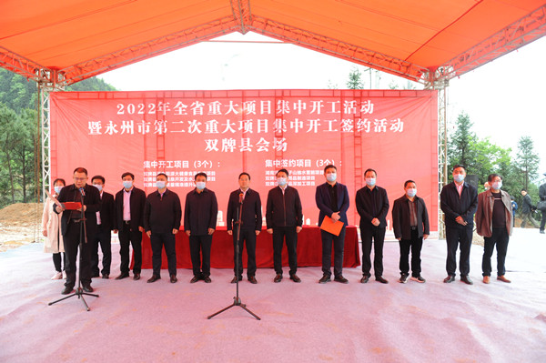 4月18日上午,省地质灾害调查监测所湘南所城乡院承担地热钻井施工的双牌县河东温泉开发及水上乐园项目,在2022年全省重大项目集中开工活动暨永州市第二次重大项目集中开工签约活动双牌县会场正式宣布开工。