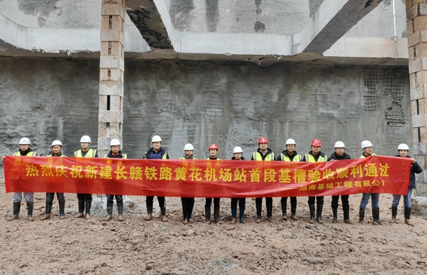 2月14日,湖南基础工程有限公司承建的长沙机场改扩建工程综合交通枢纽工程基坑支护一标段项目顺利通过底板验槽,在众多标段中率先交付,为后续主体结构施工如期完成奠定了坚实的基础。
