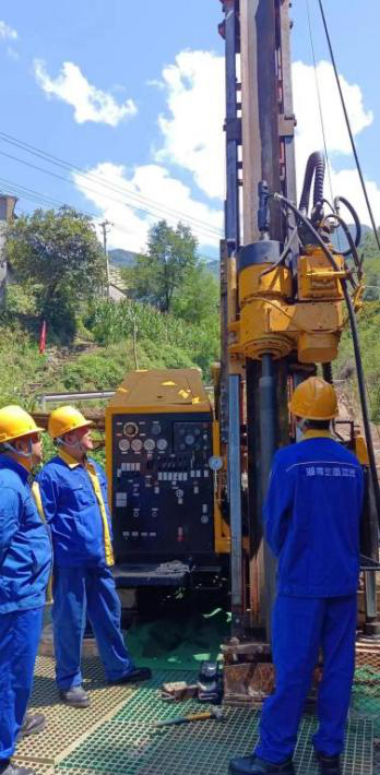 8月2日,随着一阵钻机的轰鸣声,由省生态所福诚公司承接的重庆市城口县奚家湾锰矿项目ZK9—6钻孔顺利开钻,该钻孔设计孔深1150米,倾角为75°。作为重庆市财政项目,项目共设计7个钻孔,最深孔达1500米。
