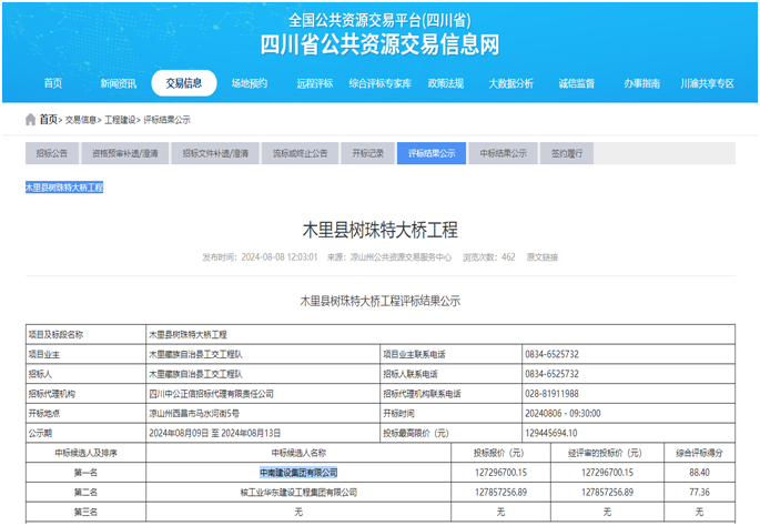1.27亿元!中南建设集团中标木里县树珠特大桥工程项目