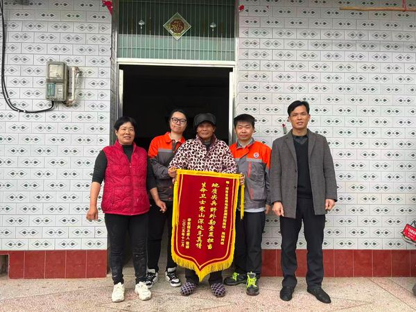 八旬老人李秋福身穿厚棉袄,面色红润,一把握住阳佩琪和周钢的手,久久没有松开。他的儿子展开一面锦旗,红底金字,“地质尖兵 生命卫士”八个大字,在略显昏暗的堂屋里,蓦然亮起一道温暖的光。